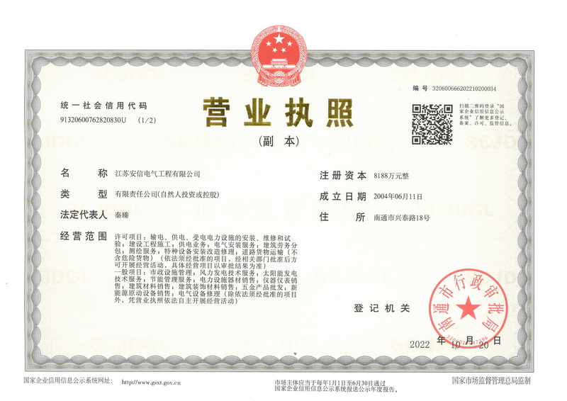 江蘇安信電氣工程有限公司,成立于2004年6月,注冊(cè)資金8188萬元,占地22000平方米,位于南通市興泰路18號(hào),東接南通站、興東機(jī)場(chǎng),西鄰南通西站、滬蘇通公鐵長(zhǎng)江大橋,交通便捷。